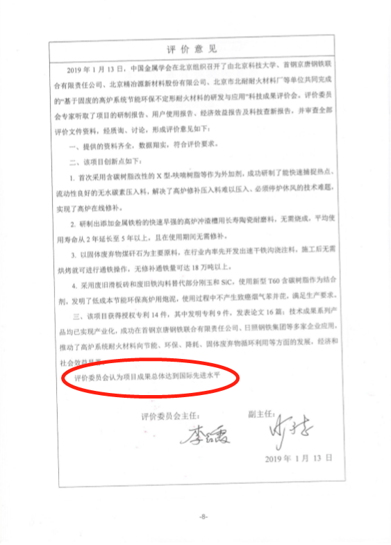 精冶源新型環保炮泥是精冶源參與的科研項目——“基于固廢的高爐系統節能環保不定形耐火材料的研發與應用”的重大科研成果,曾獲得中國金屬學會的高度評價。